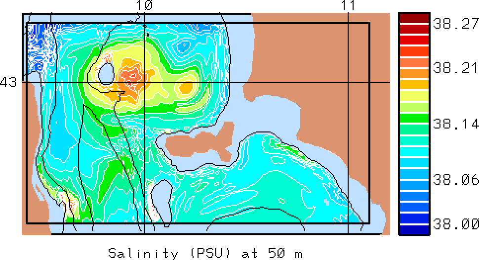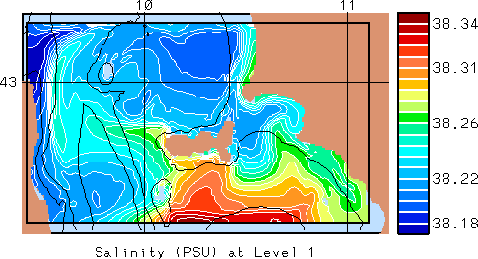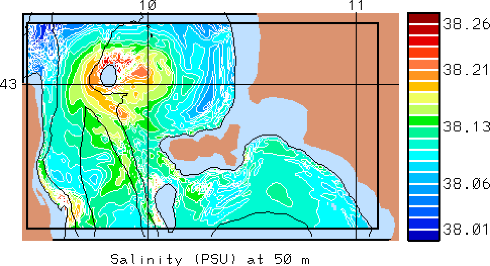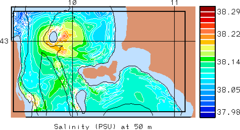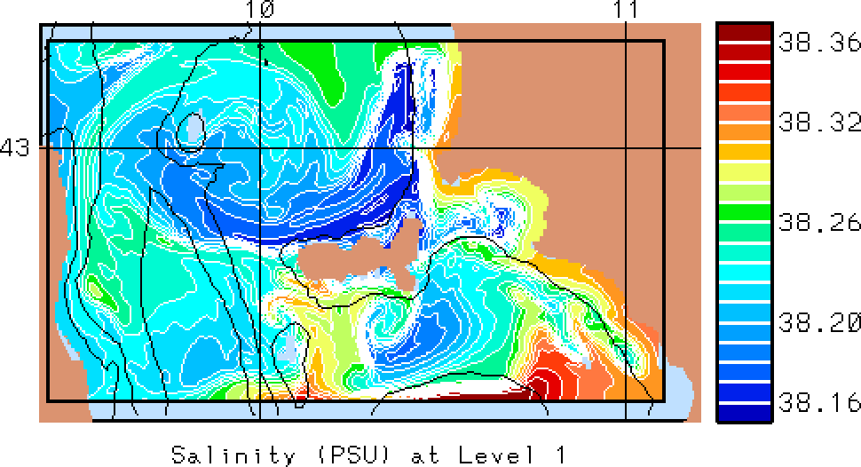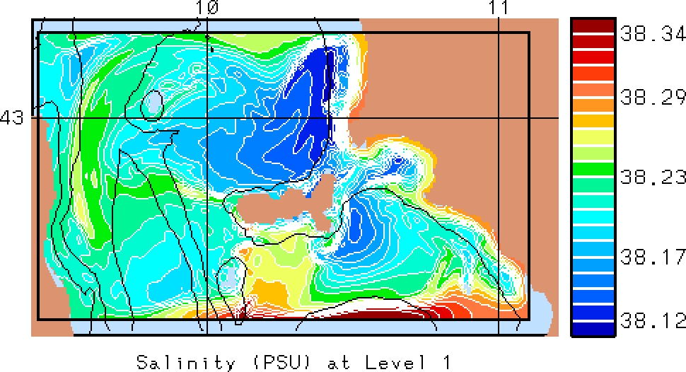 The results presented below show temperature, salinity and total velocity
