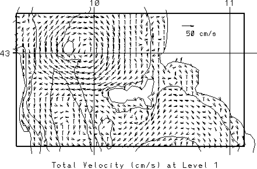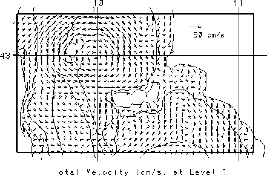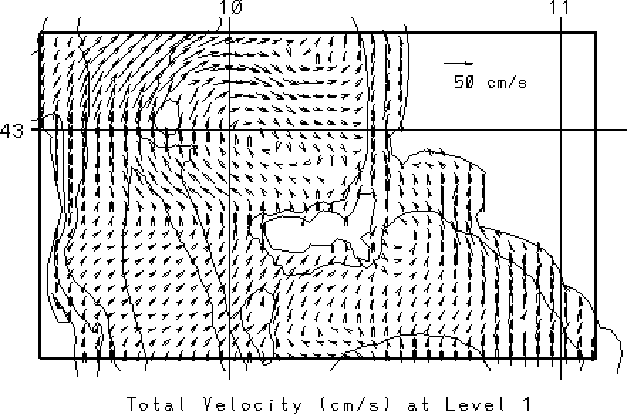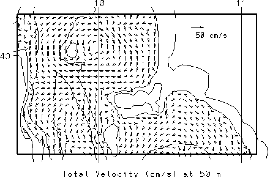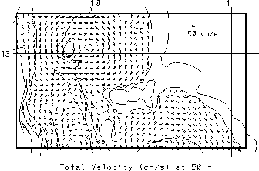 vectors at the surface and at 50m. Overlain on these fields are the 50, 200