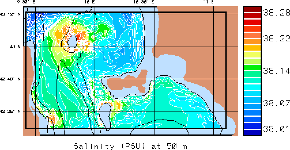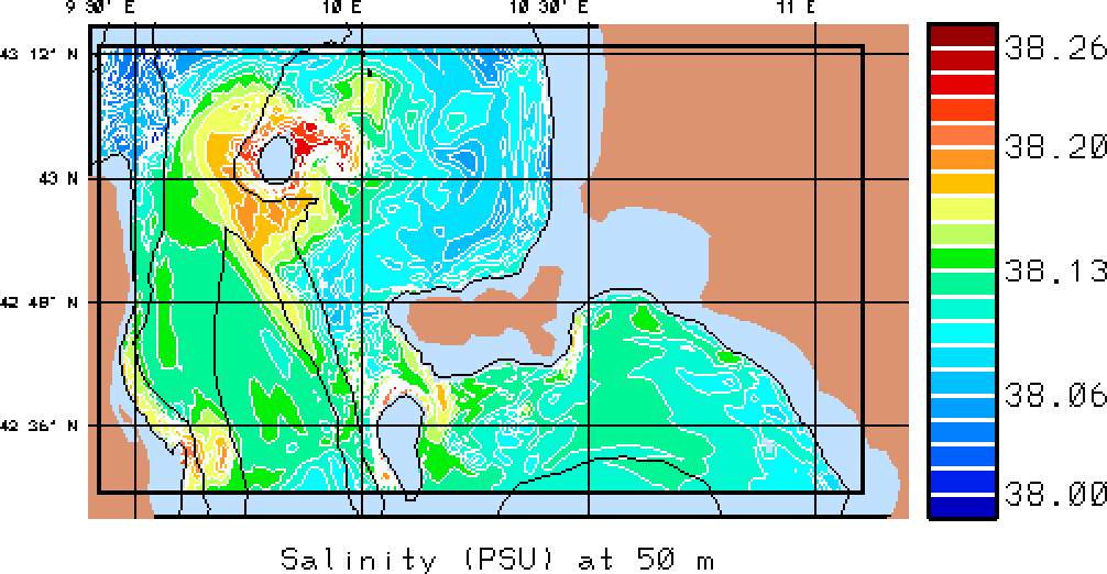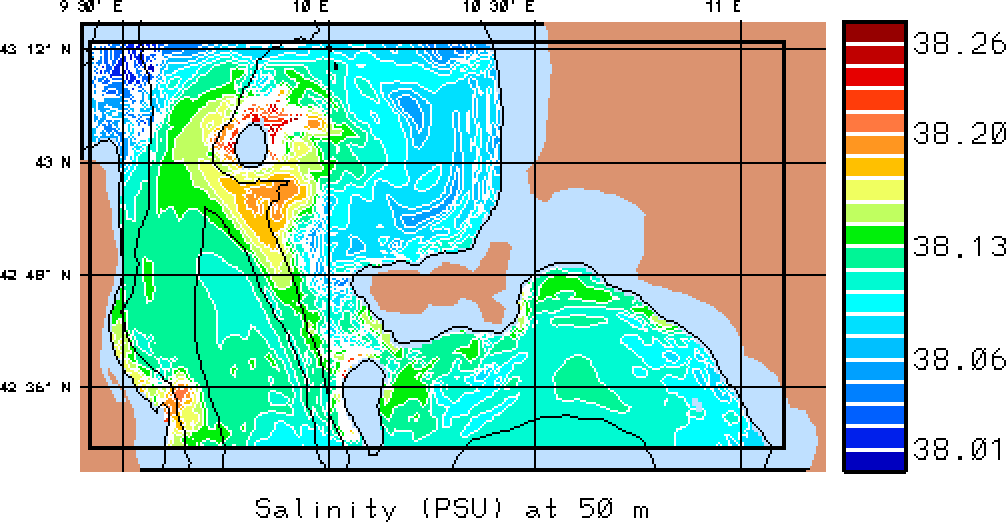 The results presented below show temperature, salinity and total velocity