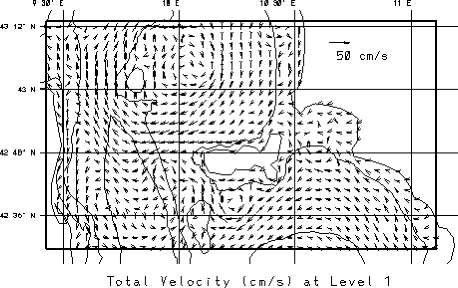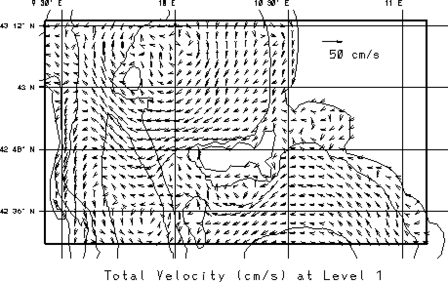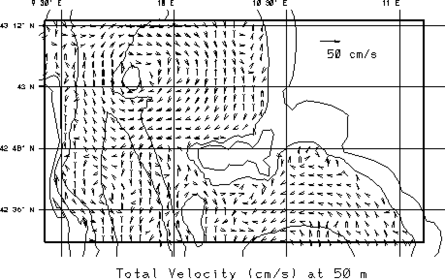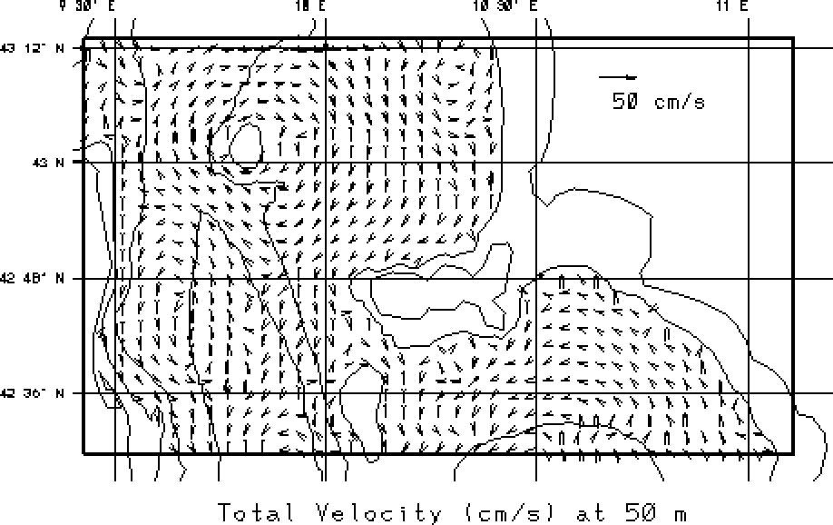 vectors at the surface and at 50m. Overlain on these fields are the 50, 200