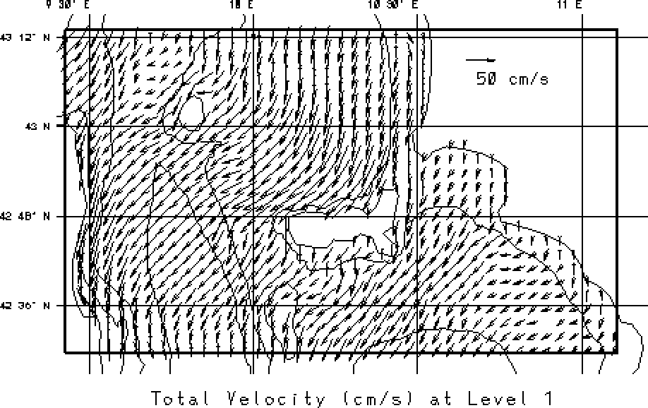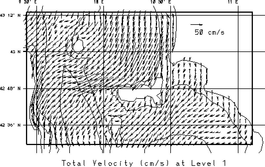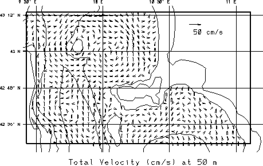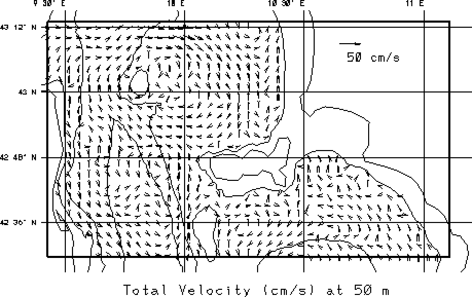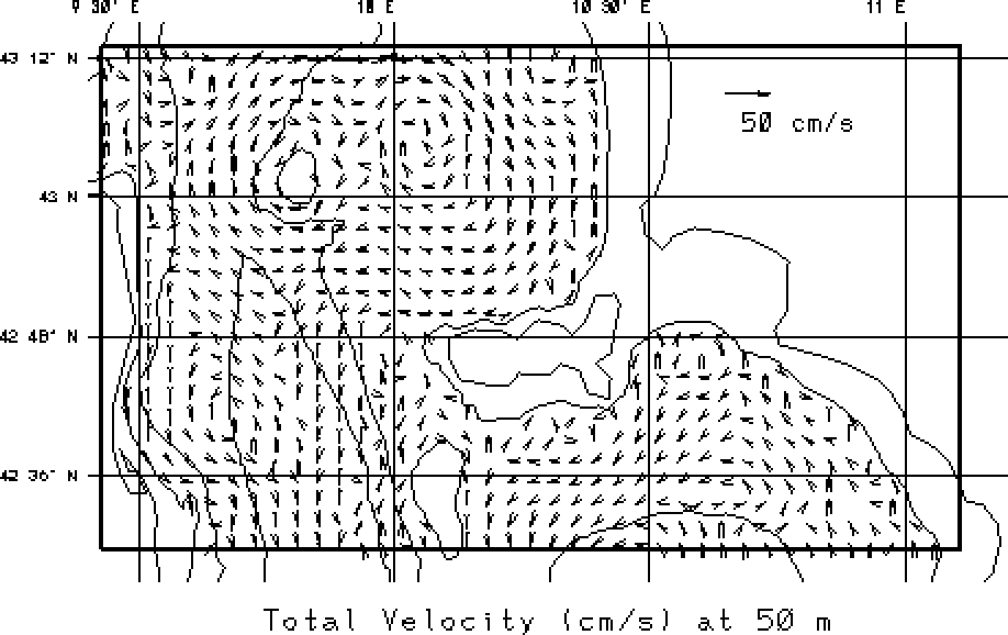 vectors at the surface and at 50m. Overlain on these fields are the 50, 200