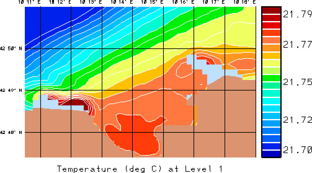 The actual Elba domain forecasts are made in the Elba domain surrounding the island as indicated in the cover page. The products here are focussed on Procchio Bay and its surroundings.