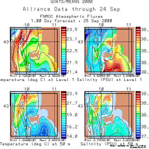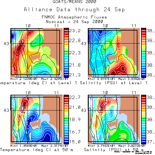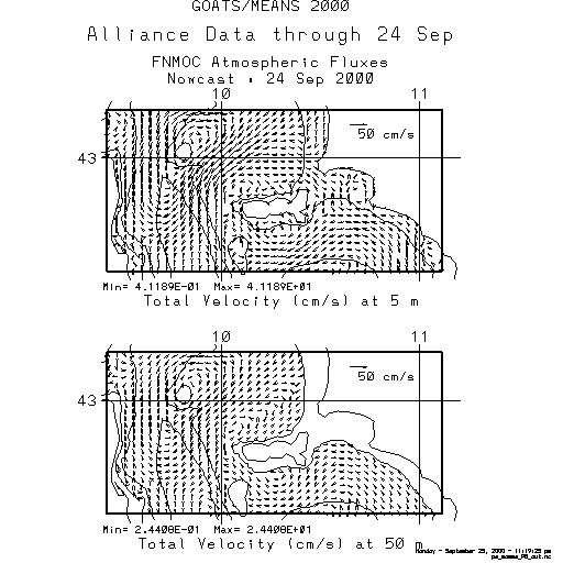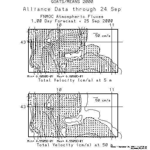 The Harvard Primitive Equation model was initialized using the Alliance CTD data collected through 24 September and forced with atmospheric fluxes from FNMOC.