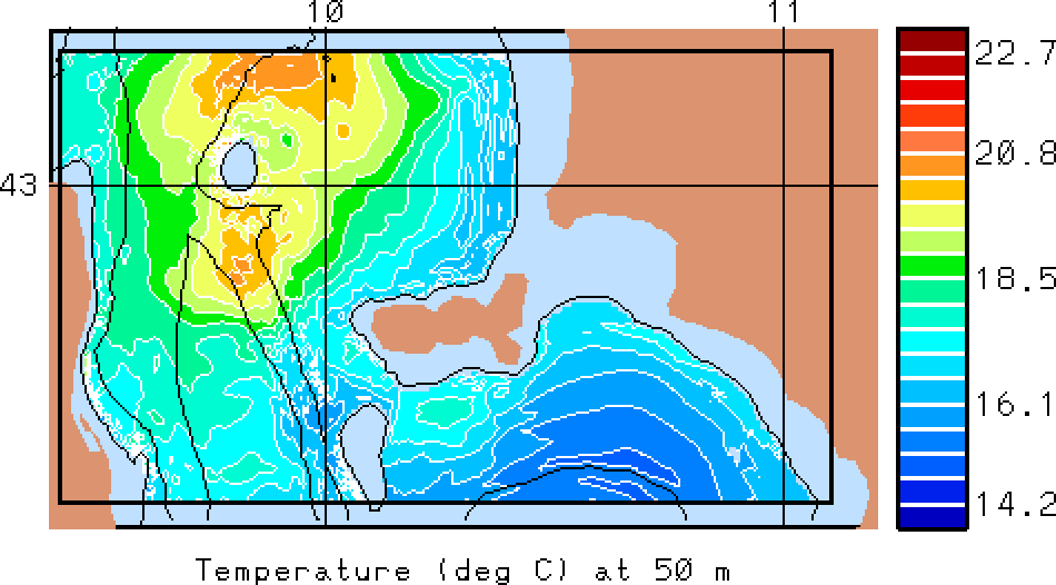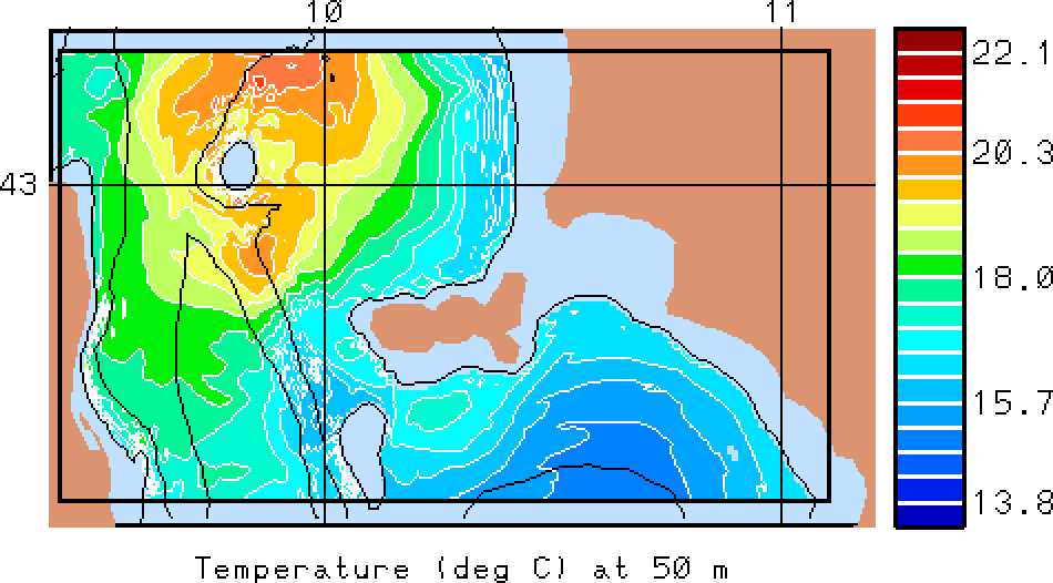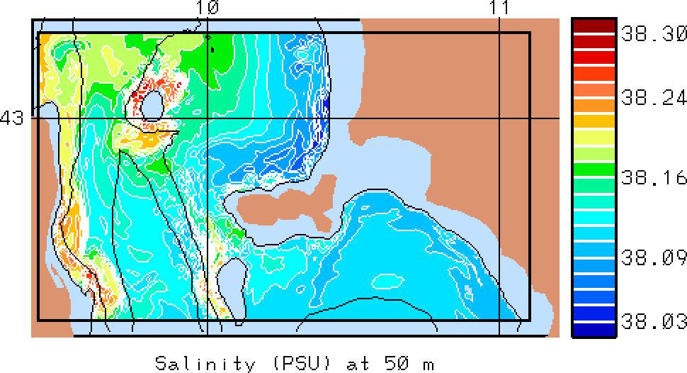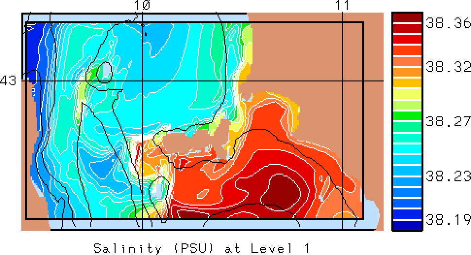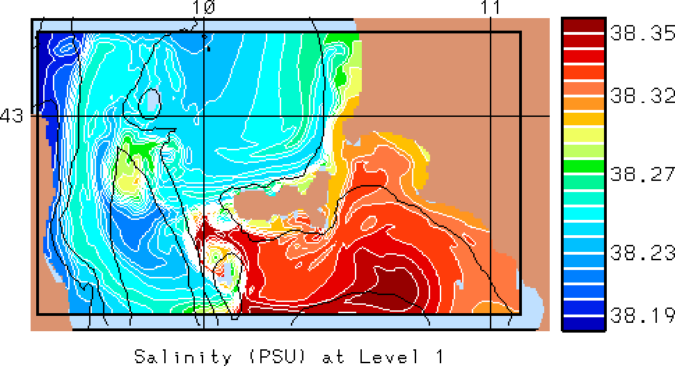 The results presented below show temperature, salinity and total velocity