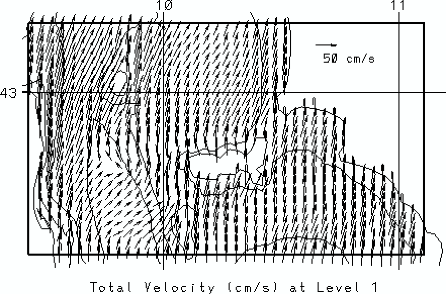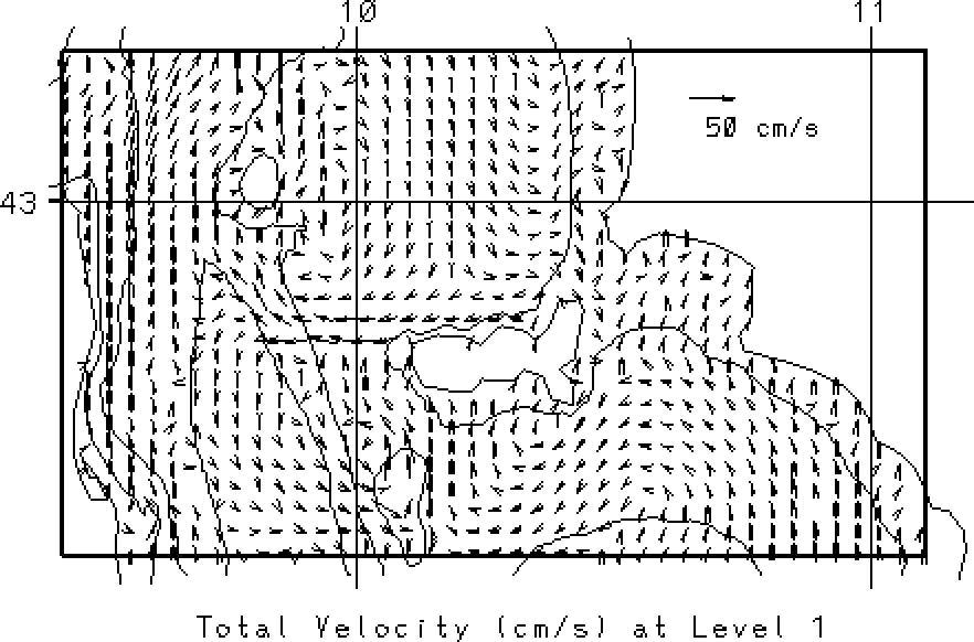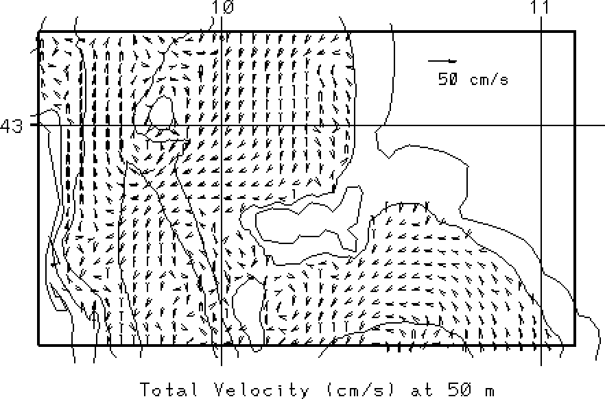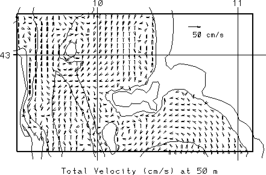 vectors at the surface and at 50m. Overlain on these fields are the 50, 200